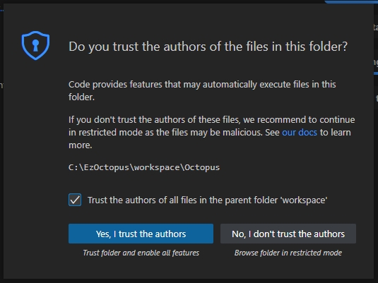 - 폴더 선택 ( C:\EzOctopus\workspace )