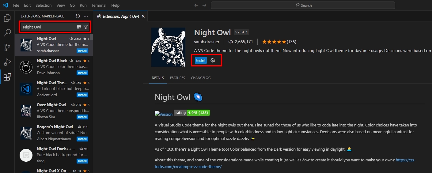 - Project Manager- GitLens - Git supercharged- Material Icon Theme파일 > 기본설정 > 파일 아이콘 테마- Night Owl파일 > 기본설정 > 색테마- Prettier줄바꿈등의 스타일을 자동으로 변환해주다.- Auto Close Tag- Ato