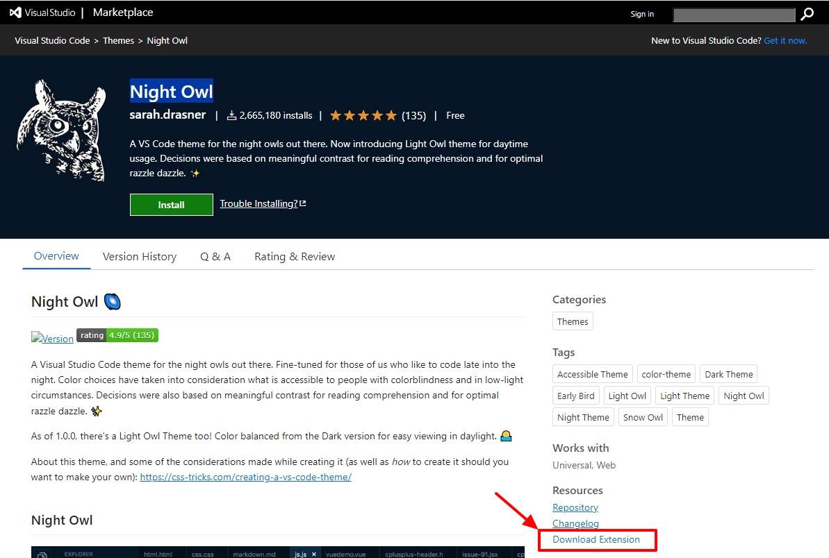 다. 다운로드 ( .vsix 파일이 다운로드 됩니다. )