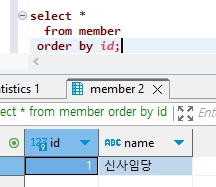 그래서 Database 에서 데이터를 수정합니다. ( name 을 "홍길동" 에서 "신사임당" 으로 수정했습니다. )