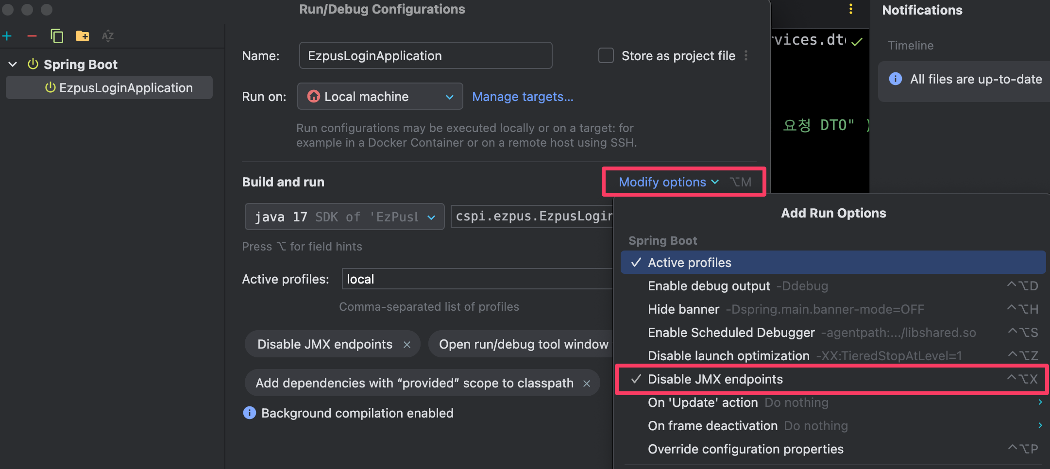 IntelliJ + SpringBoot 를 개발하던 중 아래와 같은 경고 메시지가 계속 뜨고 있습니다.
